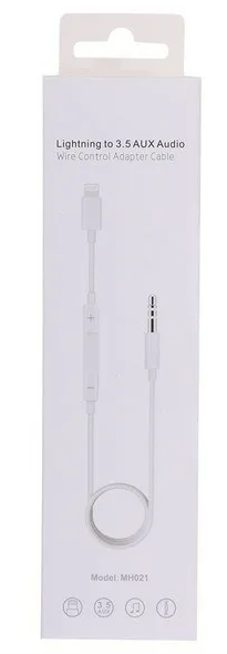 AUX Audio кабель 3,5 мм на Lightning+кнопки регулировки громкости, белый