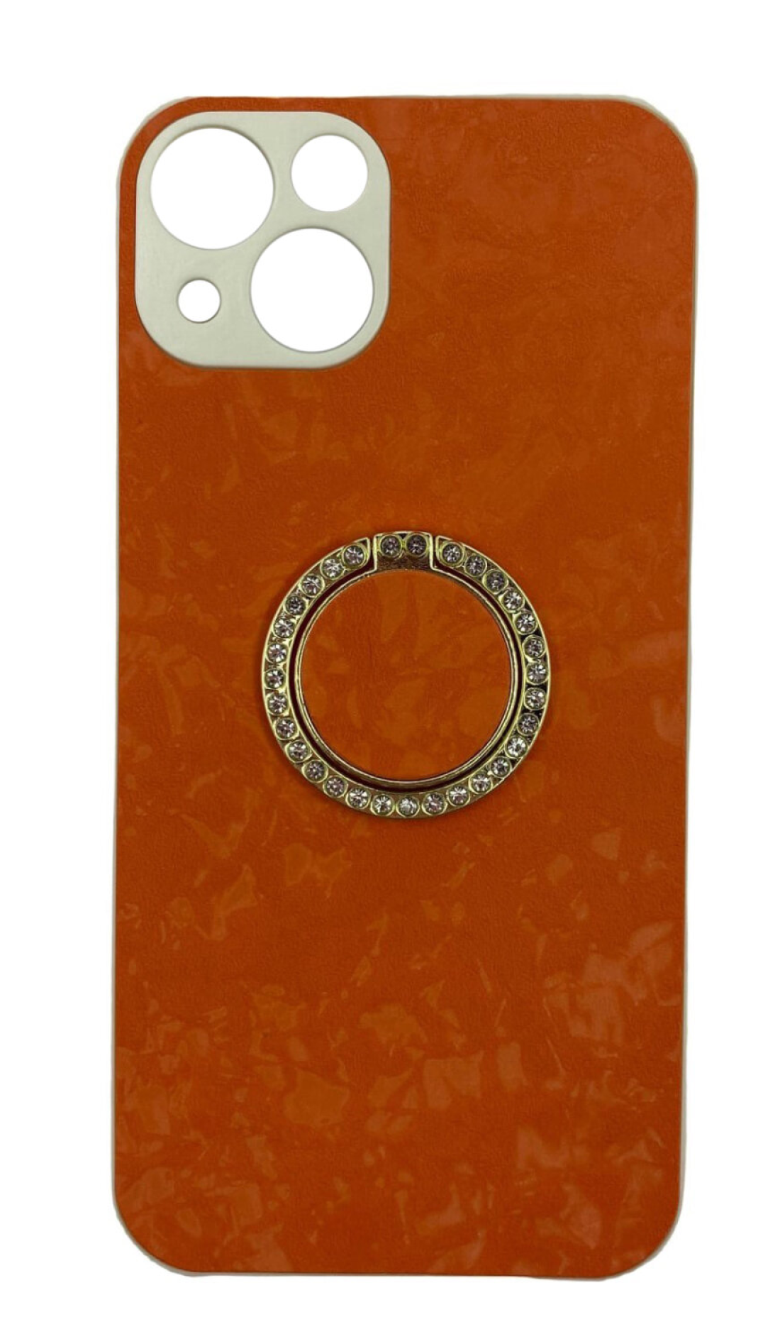 Чехол силиконовый iPhone 13 mini (5.4), с подставкой кольцом на палец со стразами, оранжевый