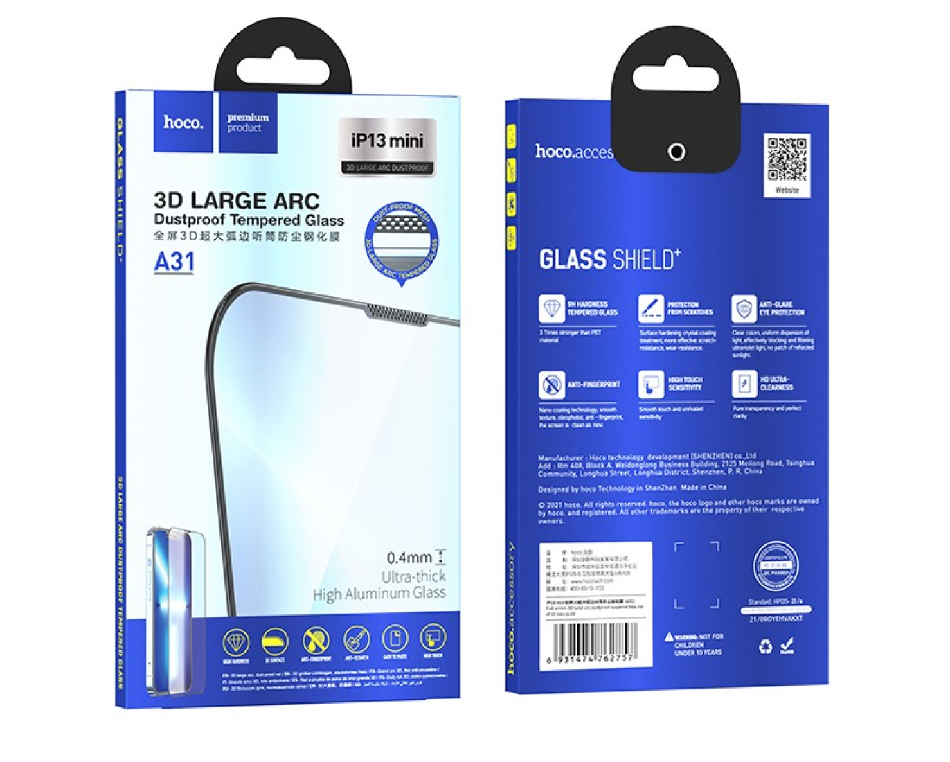 Защитное стекло на iPhone 13 mini (5.4) модели A31 от бренда HOCO представляет собой высококачественный аксессуар, предназначенный для защиты экрана вашего смартфона. Оно обладает рядом характеристик, которые обеспечивают надёжную защиту и удобство использования.