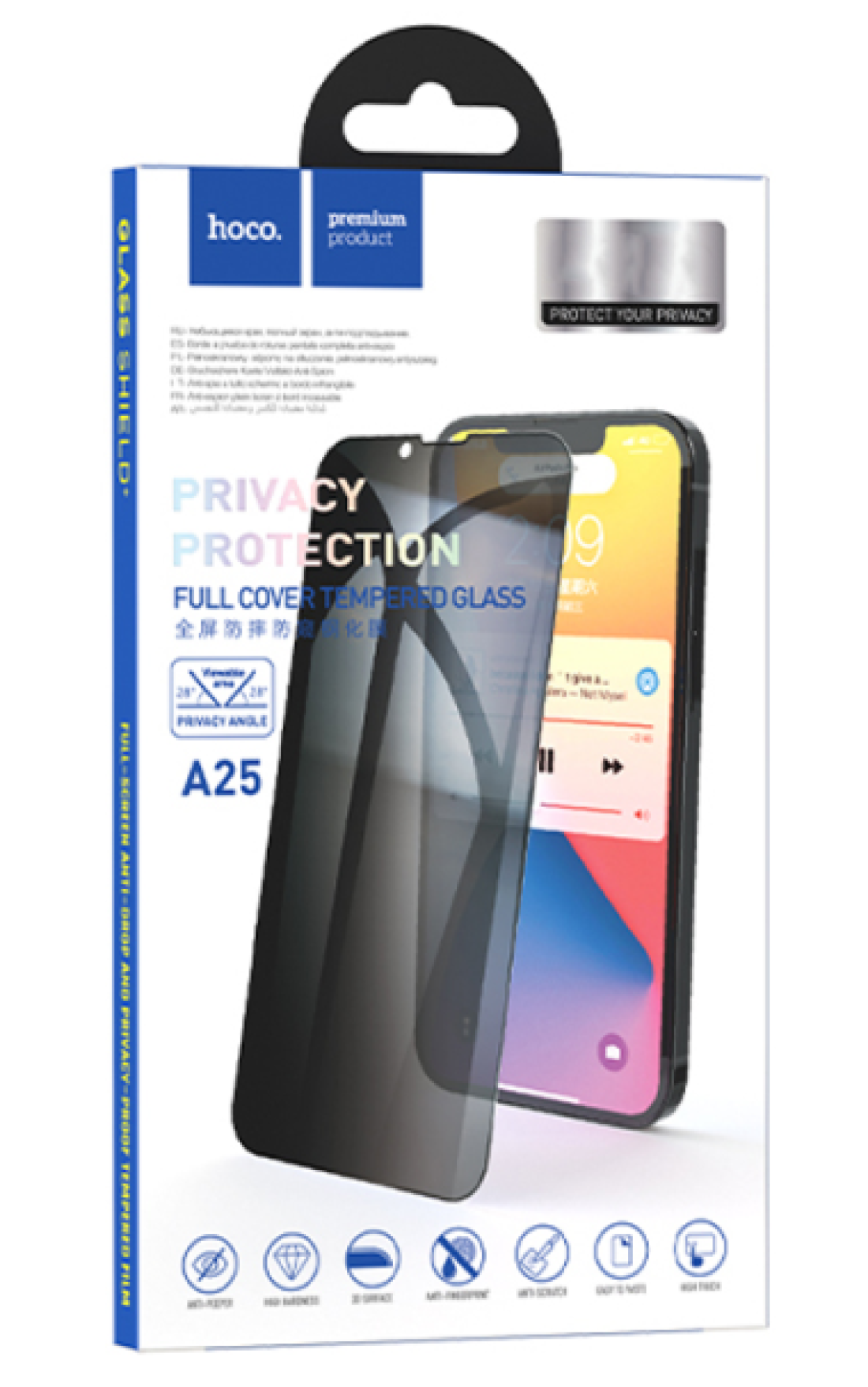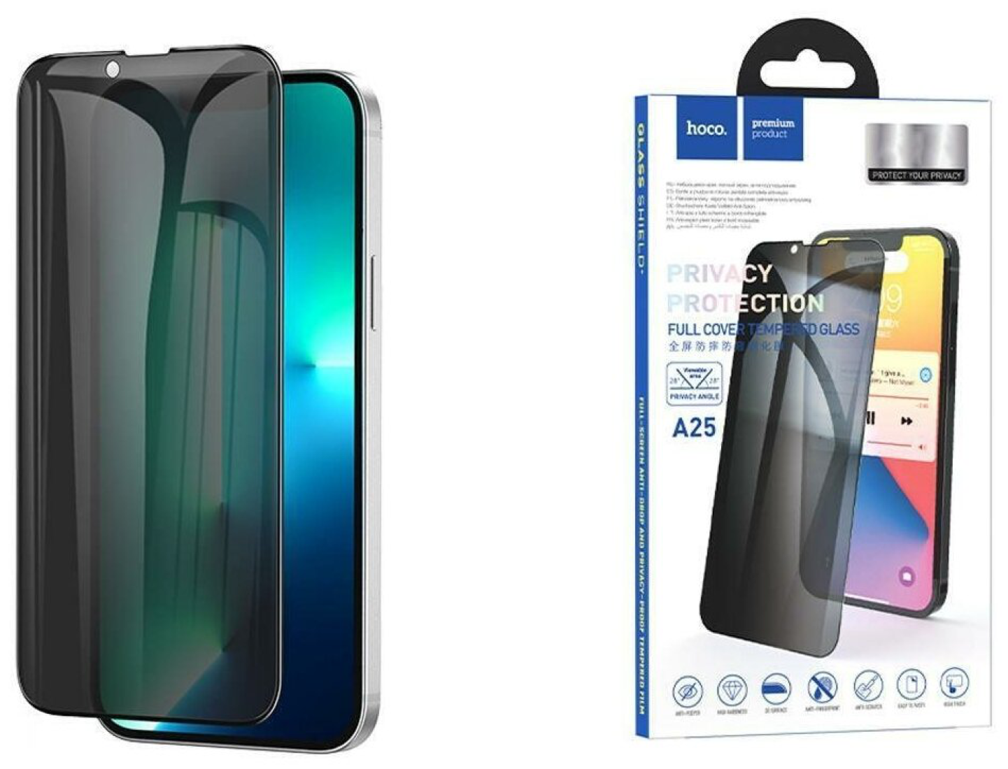 Защитное стекло на iPhone 13 mini (5.4) A25, HOCO, Full-screen anti-drop and privacy-proof tempered film, черное