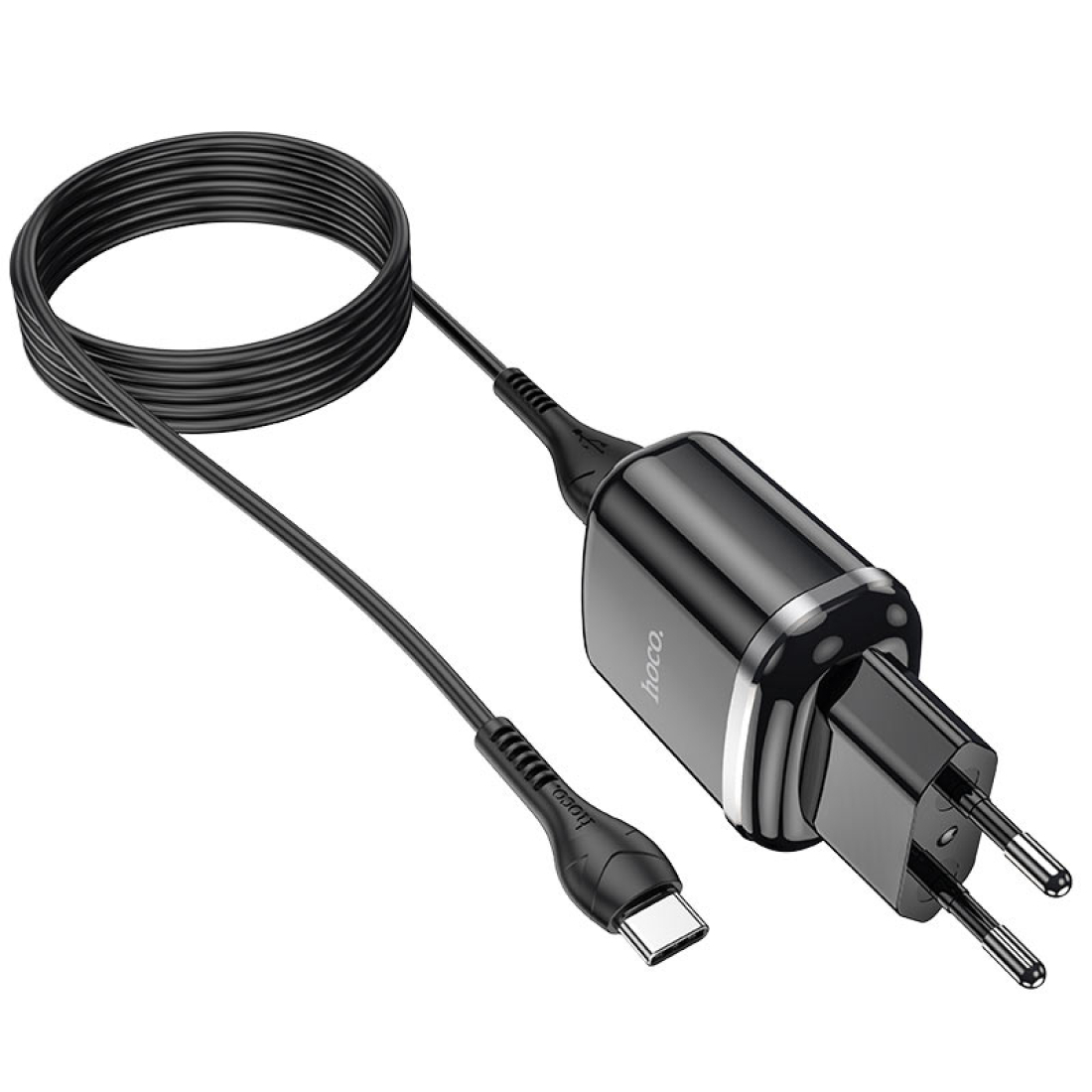 Сетевое зарядное устройство, 2 USB 2.4A 12W (N4), HOCO, Type-C, Умная зарядка, черный