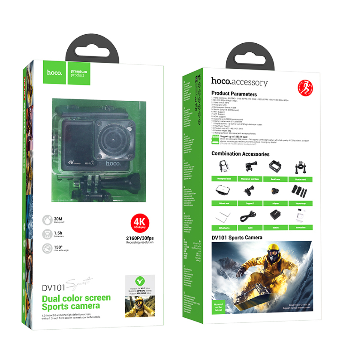 Cпортивная камера DV101 с двумя дисплеями, НOCO, черный