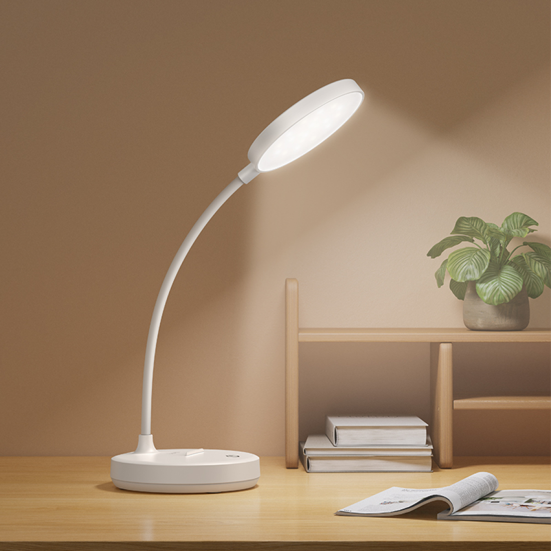 HOCO HX14 — универсальная настольная лампа с автономным питанием и гибкой настройкой освещения. Подходит для рабочего стола, прикроватной зоны, учёбы или чтения. Благодаря встроенному аккумулятору и компактным размерам её удобно брать в поездки.