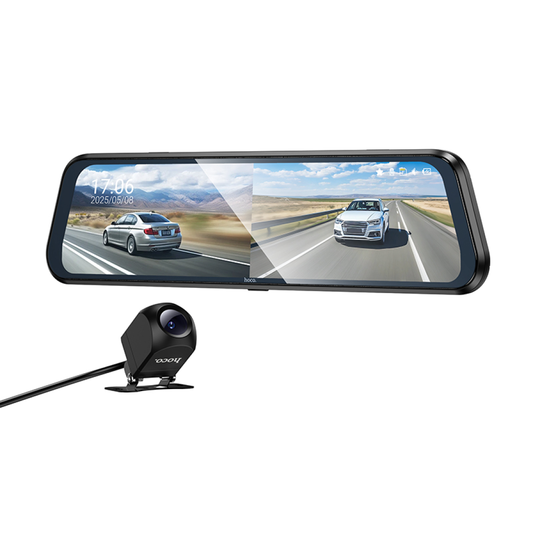Видеорегистратор HOCO DV16 — это двухканальный автомобильный регистратор с передней и задней камерами, интегрированный в зеркало заднего вида. Устройство оснащено сенсорным IPS-дисплеем и поддерживает множество функций для обеспечения безопасности и удобства использования