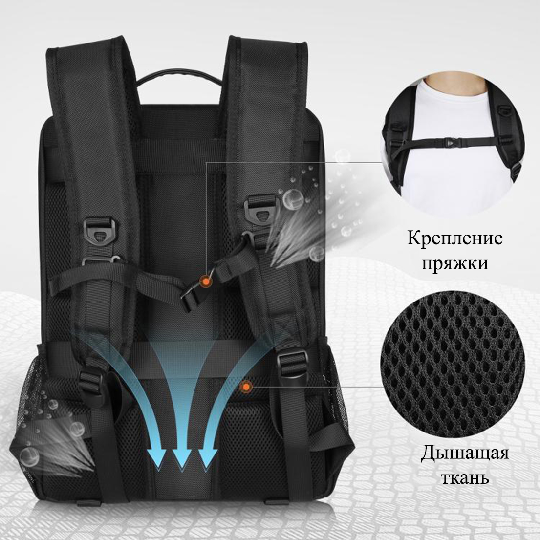 5. Дышащий эластичный плечевой ремень и задняя сторона обеспечивают дополнительную поддержку спины и повышают комфорт.