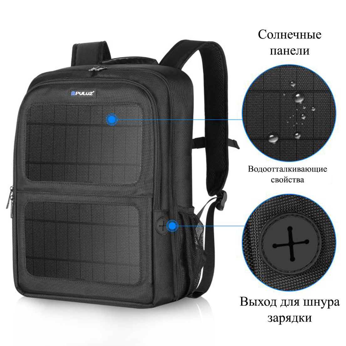 Рюкзак водонепроницаемый для фотоаппарата, камеры и др., 5018, PULUZ, с солнечной батареей 12Вт, черный