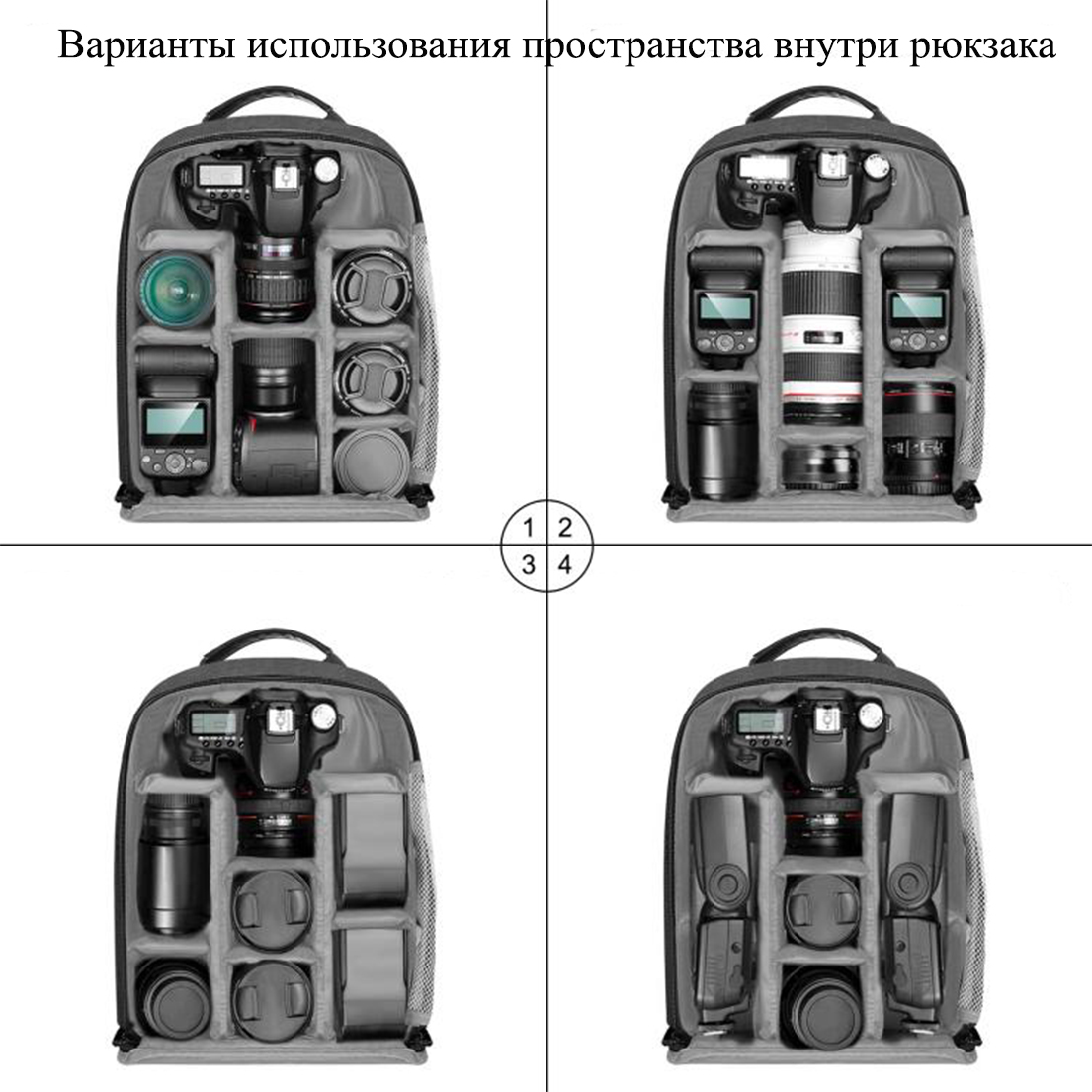 3. В нее можно поместить корпус цифровой зеркальной камеры, объектив и 3-6 дополнительных объективов и аксессуаров.